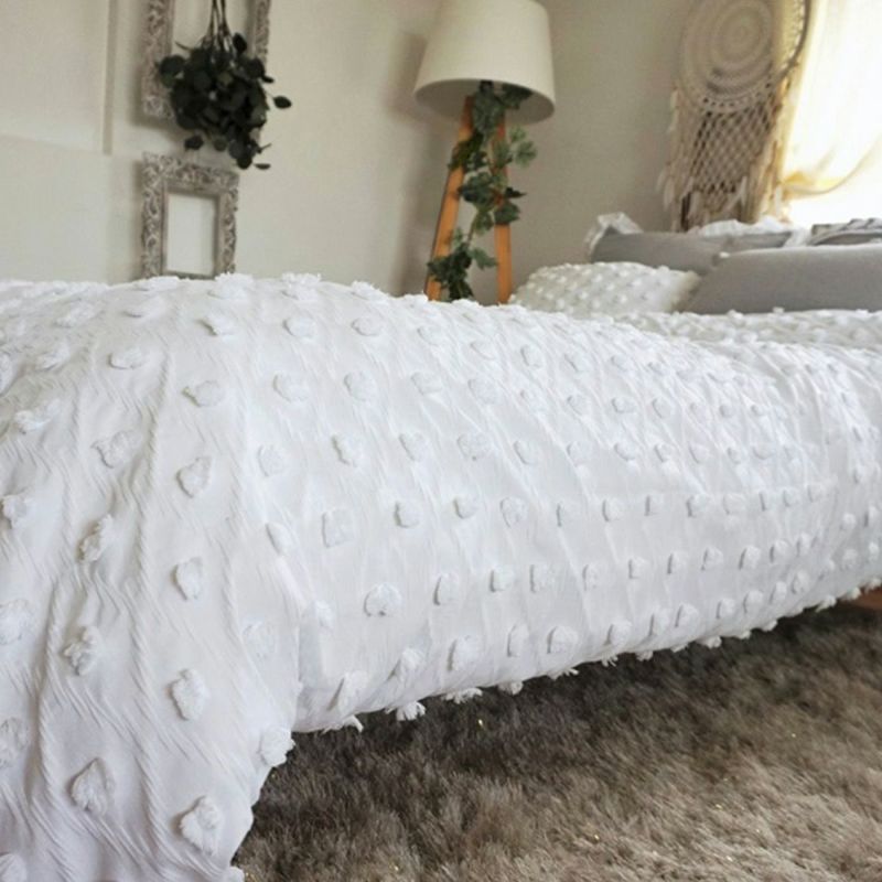 ボンボンストリート掛け布団カバー (ダブルサイズ)&ピローケース(手前・左)※ピローケース(右)&マルチカバーは<レシピ ダマスクホワイト>