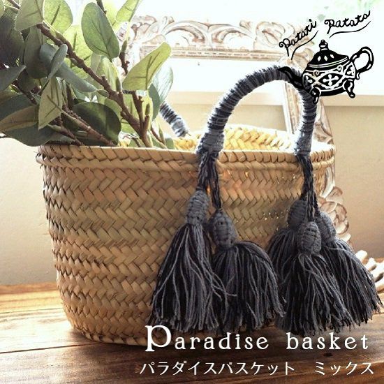 他の画像を見る SALE 【patati patata】 約W34・H20・D20 モロッコから直輸入したたっぷりのタッセルが可愛いナチュラルバスケットのバッグ<パラダイスバスケット グレー> 販売価格 ¥ 1,980 税込 モロッコから直輸入した可愛い手作りの干し草かごバッグ カートに入れる お気に入りに登録する