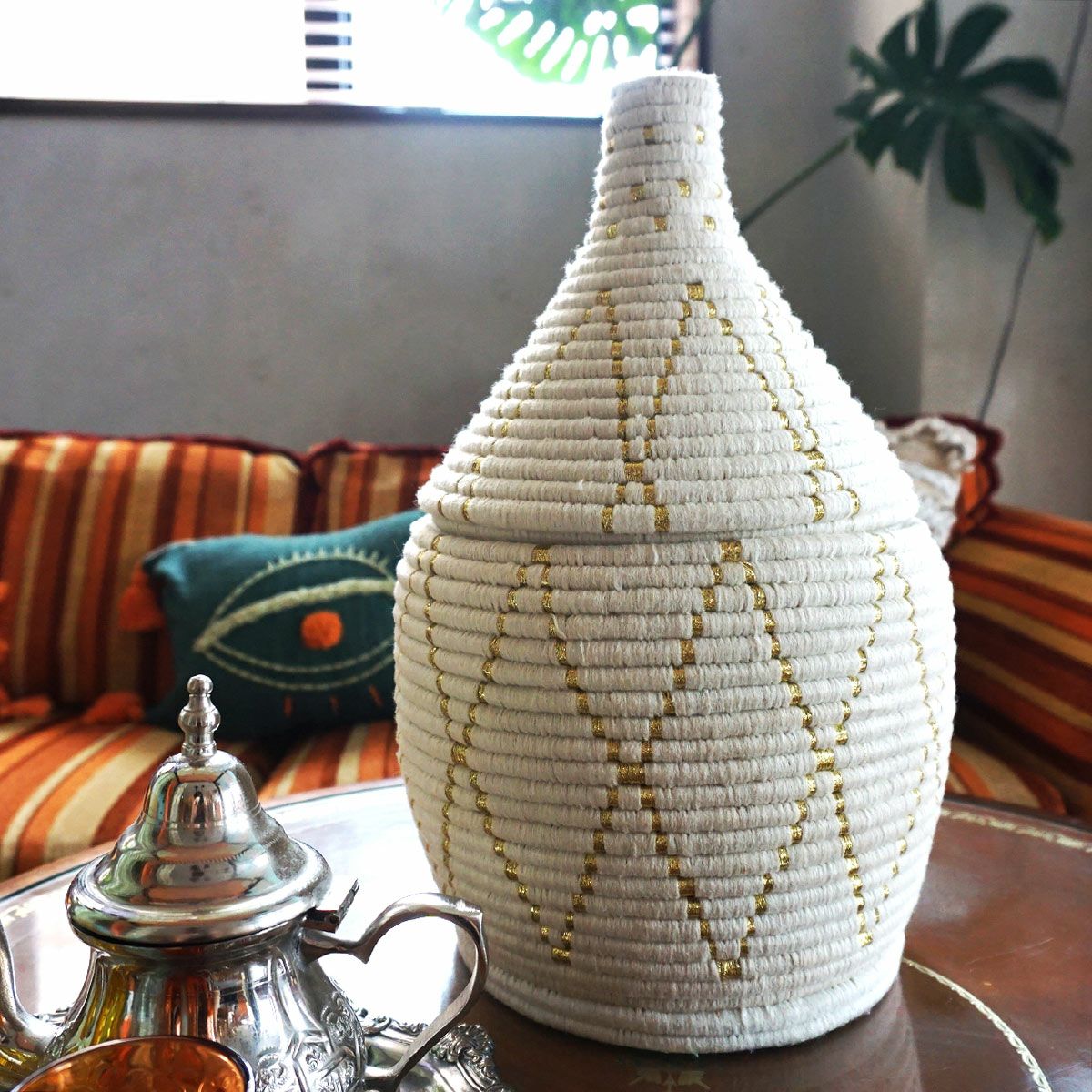 他の画像を見る patati patata モロッコから直輸入した手作りのラージサイズ・ベルベルバスケット <ディアベルベル ゴールド>:5タイプ 販売価格 ¥ 9,900 税込 モロッコから直輸入したハンドメイドの蓋付きバスケット! カートに入れる お気に入りに登録する