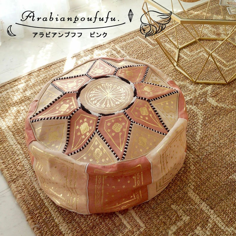 4. モロッコから直輸入!山羊の革のプフ<アラビアンプフフ ピンク>