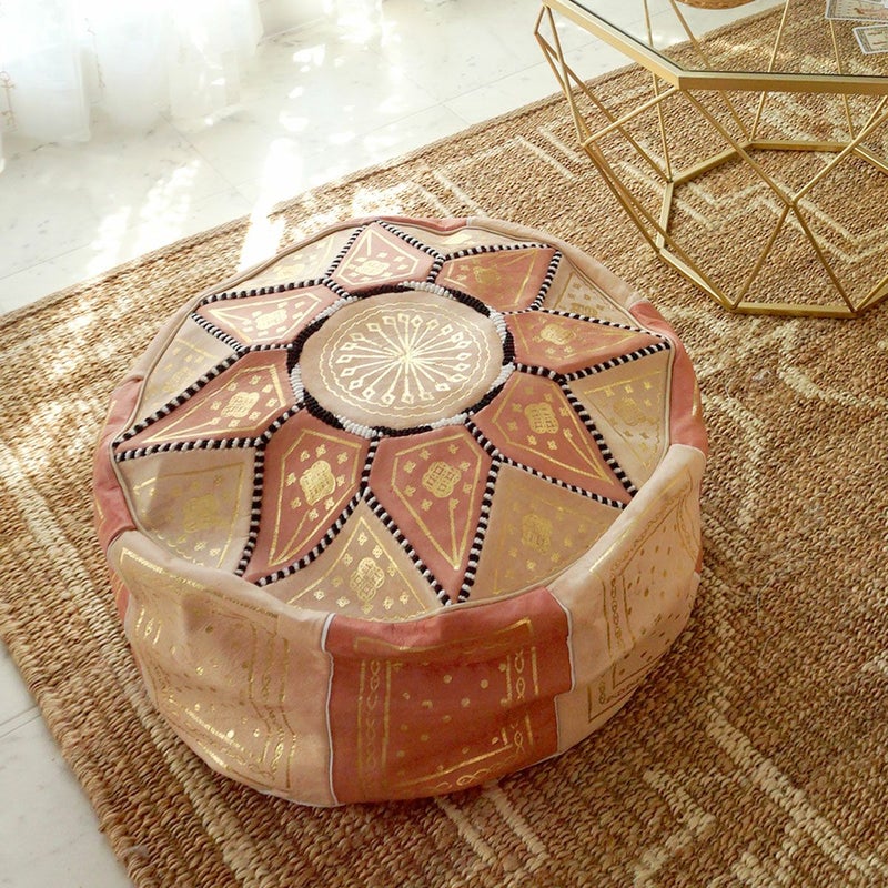 5. モロッコから直輸入!山羊の革のプフ<アラビアンプフフ ピンク>