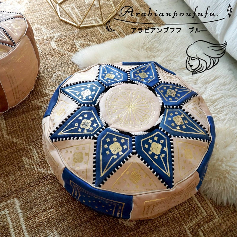 4. モロッコから直輸入!山羊の革のプフ<アラビアンプフフ ブルー>