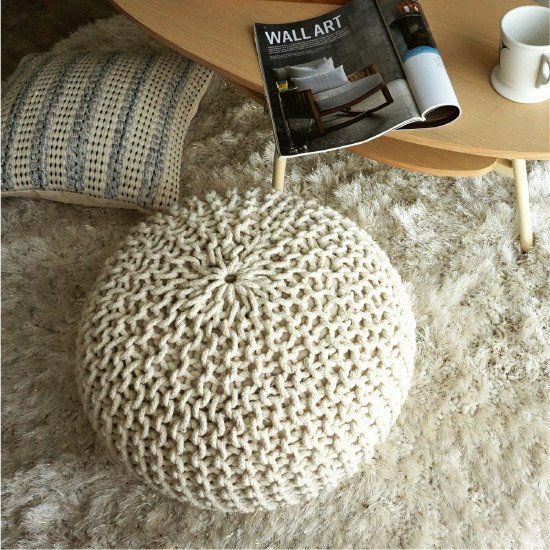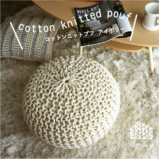 5. 【 NORDAY -ノルデイ- 】おしゃれなスツール・オットマン・テーブル 直径45cmx30cm<コットンニットプフ アイボリー>
