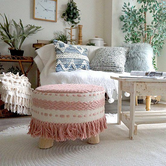 座面サイズが大きめで安定感のある作りです。ちょっと腰を掛けたりオットマンとしても便利に使えます。