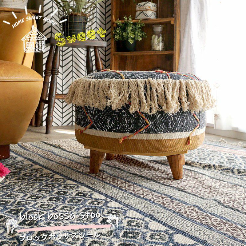 【HOME SWEET HOME - ホーム スウィート ホーム】カラフルなブロックプリントの四つ脚スツール!<ブロックボッサスツール>