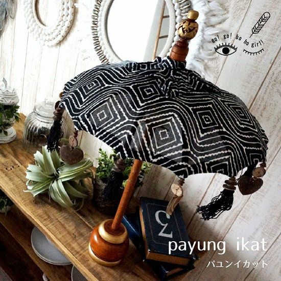 他の画像を見る 【-BO! HO! GIRL! GO! GO!-】 オリジナルデザイン・バリ島の手作りパユン・ココナッツのオーナメント付き(ミニパラソル)・高さ70cm <パユンイカット> 販売価格 ¥ 6,930 税込 インドネシアのバリ島で手作りされた伝統的なインテリア「パユン」 カートに入れる お気に入りに登録する