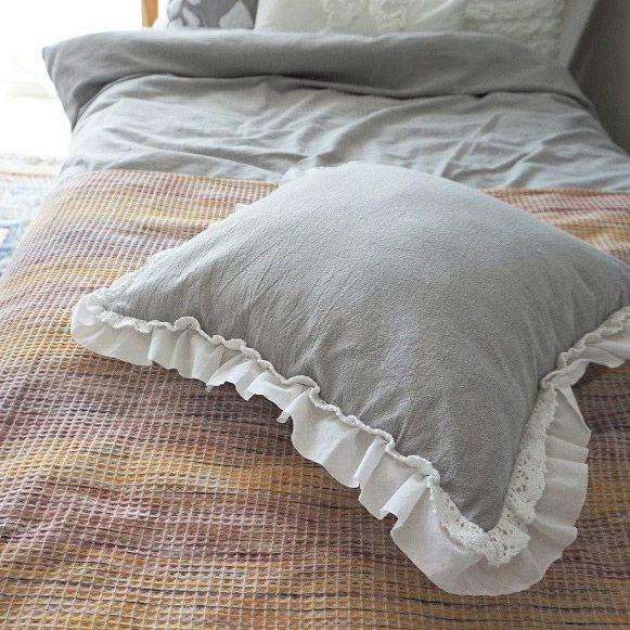当店のプライベートブランド<ホームスウィートレシピ>より、フェミニンで可愛いクッションカバーのご提案です。ベッドリネンのコーディーネートに組み合わせいただいたり、ソファーの背当てとしてご使い下さいませ。