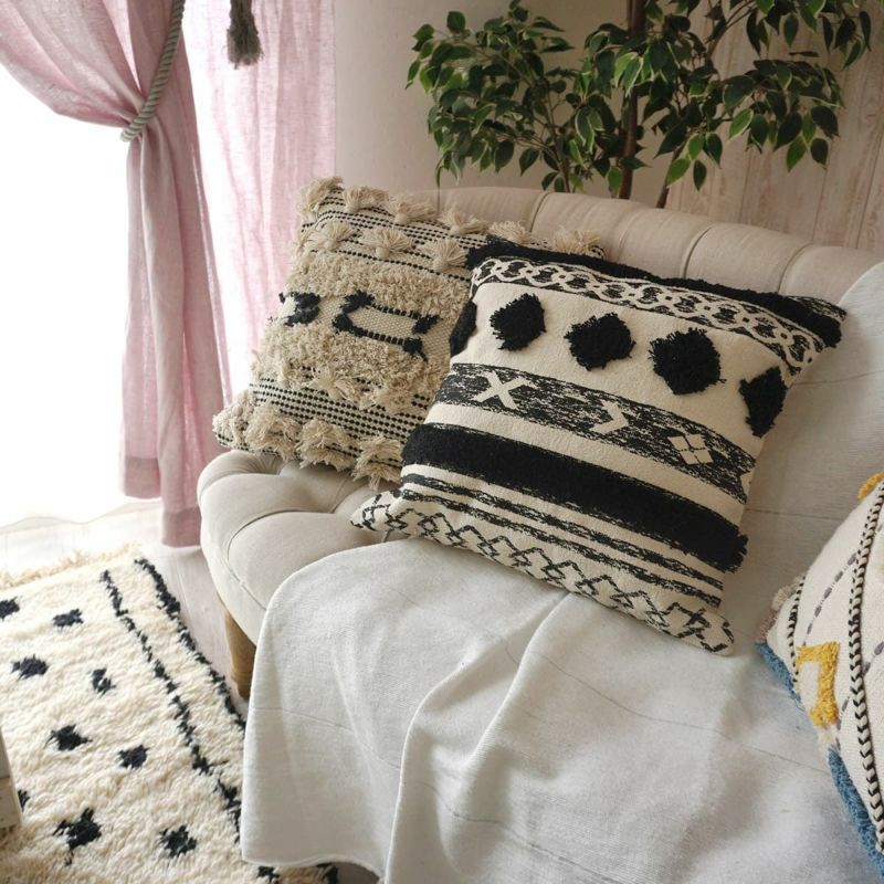 などのカーテンとのコーディネートにおすすめのおしゃれなクッションカバーです。