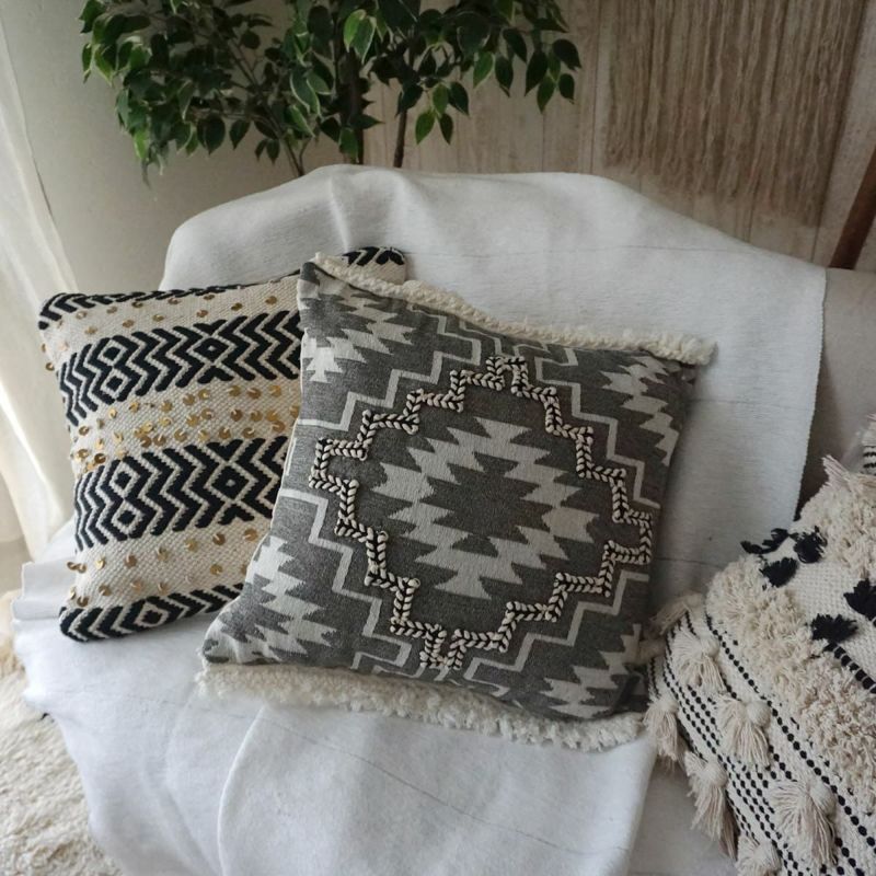 などのカーテンとのコーディネートにおすすめのおしゃれなクッションカバーです。