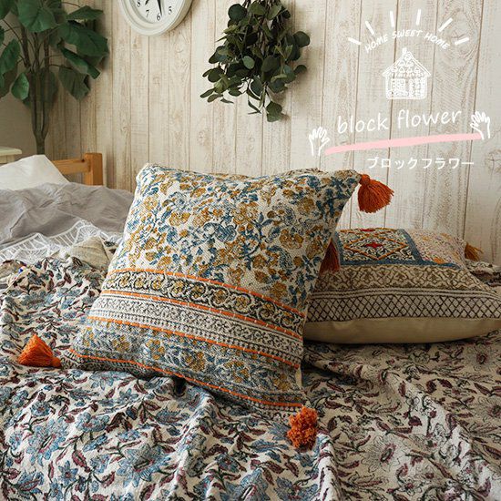 100%コットンで作られたブロックプリントのクッションカバー。