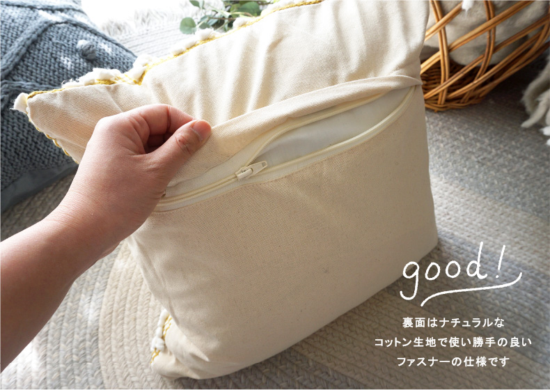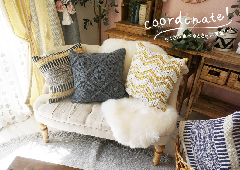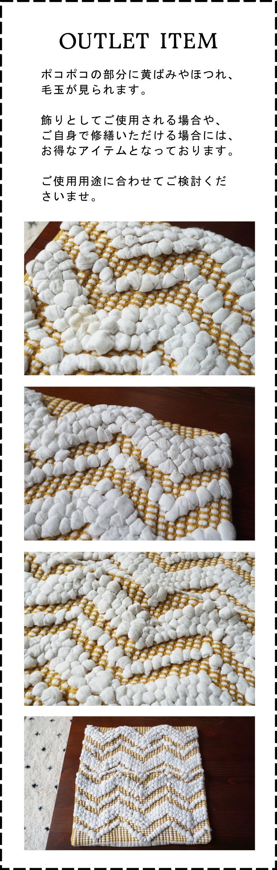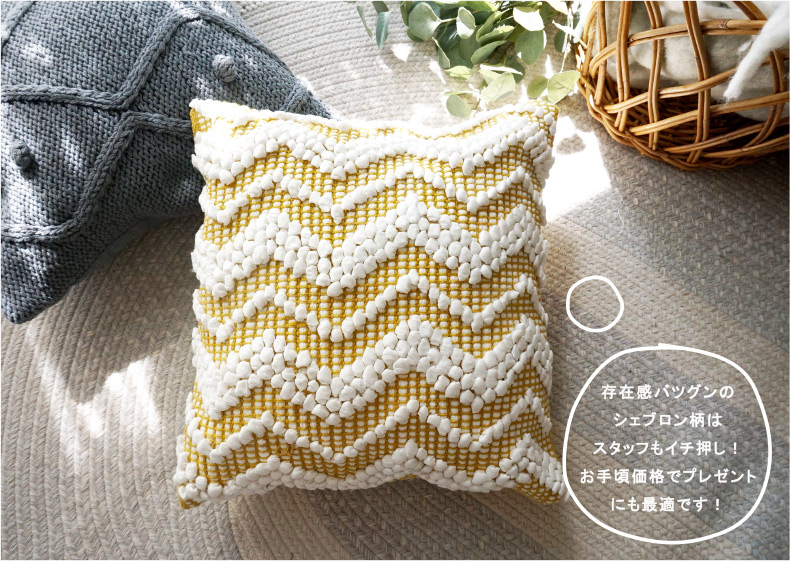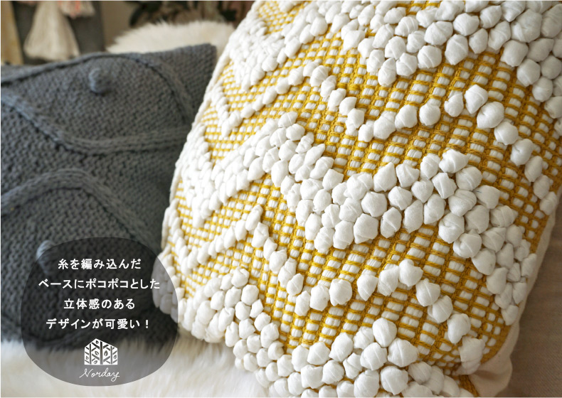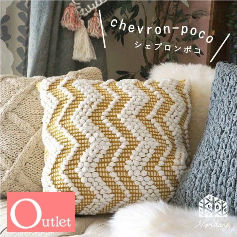 5. 【訳アリ・OUTLET】 45x45cm ポコポコがかわいいクッションカバー・ファスナー付き<シェブロンポコ イエロー>
