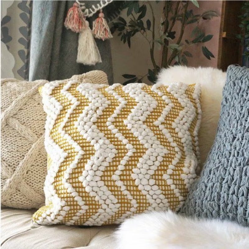 4. 【訳アリ・OUTLET】 45x45cm ポコポコがかわいいクッションカバー・ファスナー付き<シェブロンポコ イエロー>