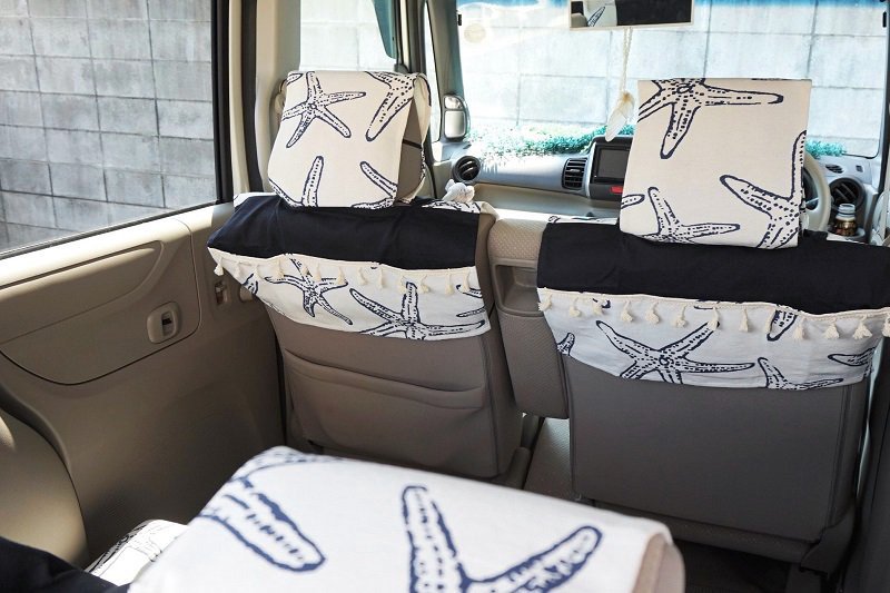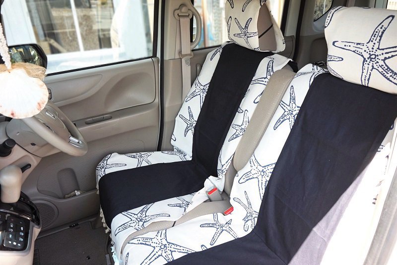 ほぼすべての軽自動車やコンパクトカーにあう様に、お作りしておりますが、ご購入前に必ずサイズをご確認くださいませ。