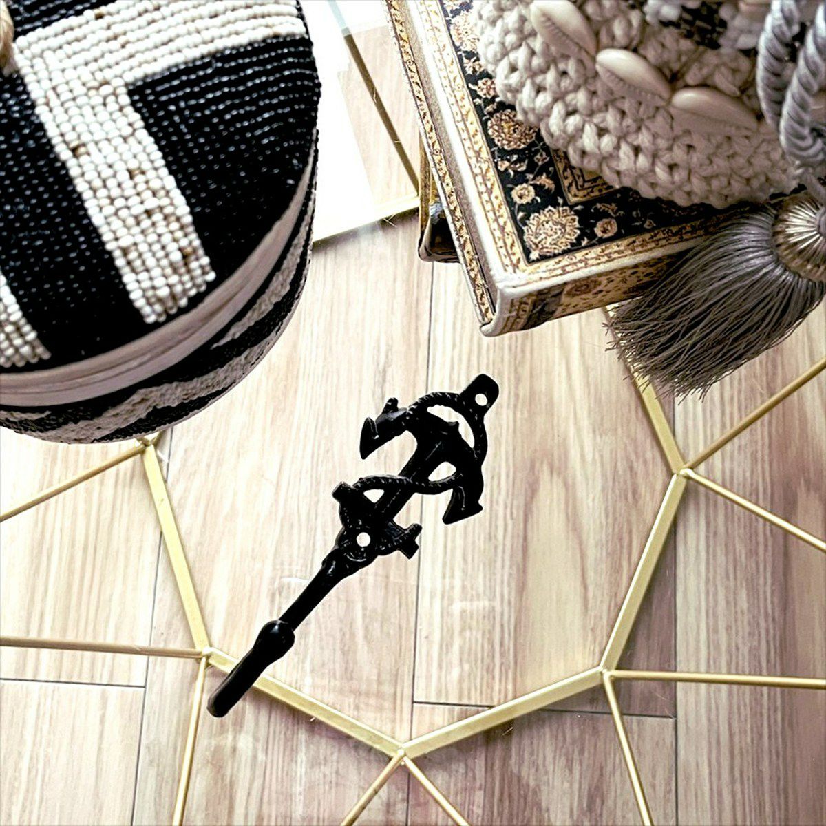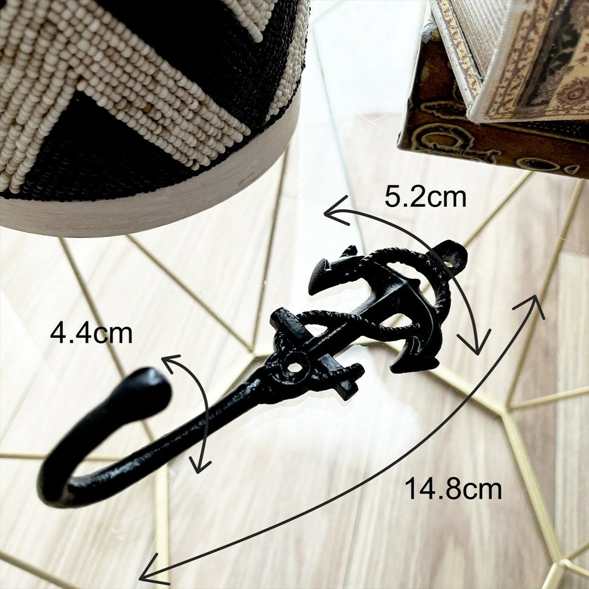 サイズ:W5.2×H14.8×D4.4cm ※木ネジ3.8×25mm 材質 :アルミニウム 入数 :フック1個入り/木ねじ(2本)付き ※木ねじのカラーは予告なく変更になることがあります。 ※錨部分が上下逆転しています。それ以外の仕様や強度に問題はございませんが、ご了承の上ご検討・ご購入をお願いいたします。 通常の向きのアンカーは こちらから
