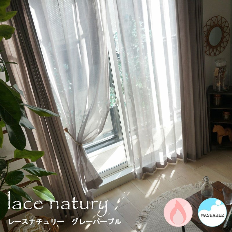 【リネンライクカーテン】日本製・防炎機能付き・ウォッシャブル <レースナチュリー グレーパープル>
