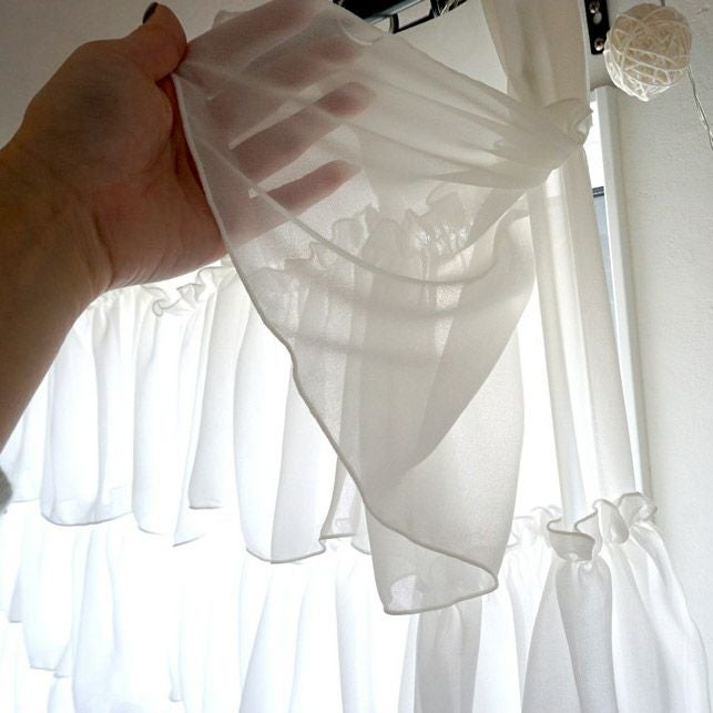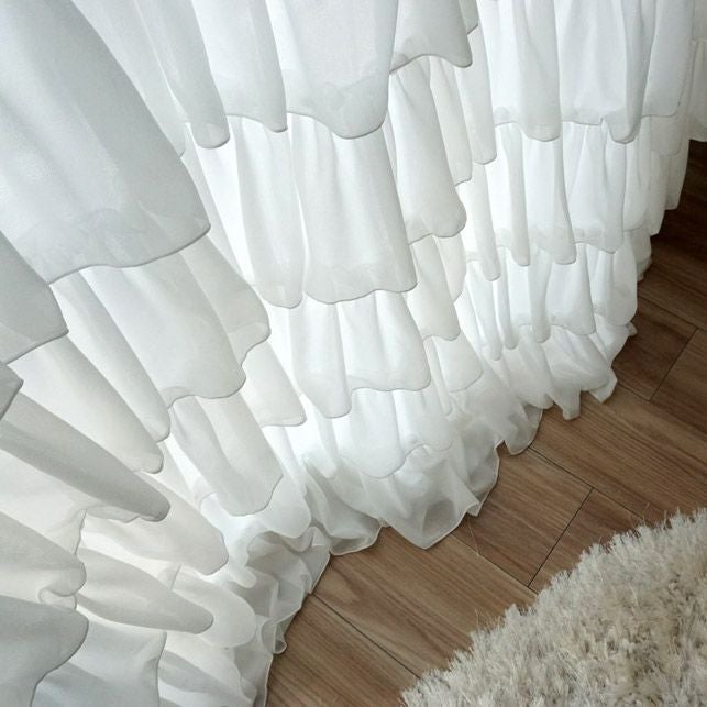 ティアードフリルをたっぷりとあしらったレースカーテンです。