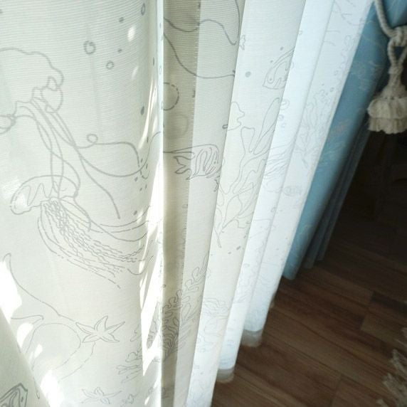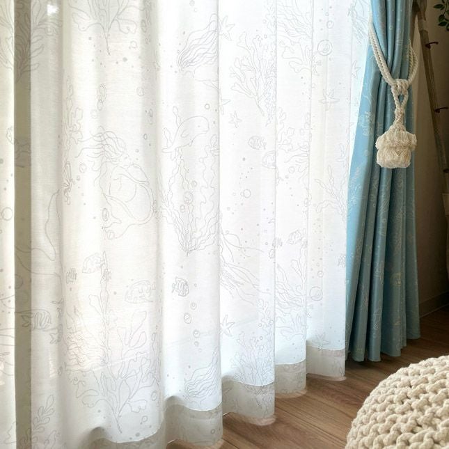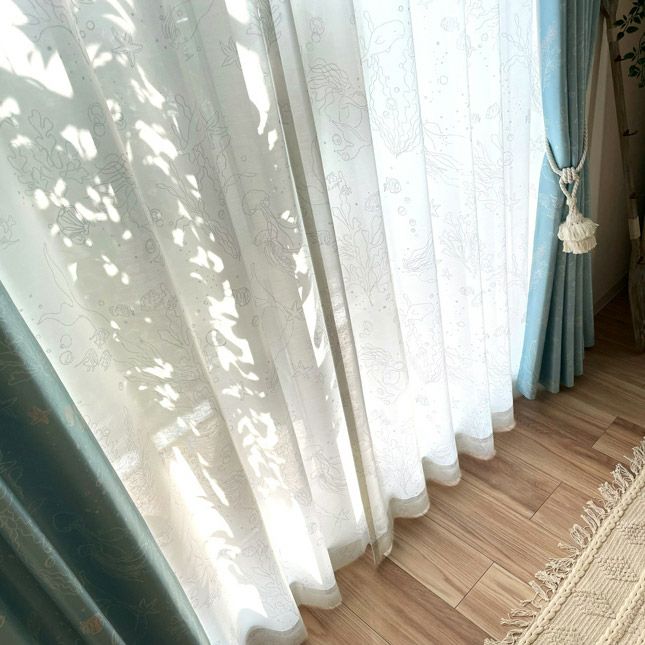 厚地カーテン<マーメイドシー>と同じデザインのレースカーテンです。