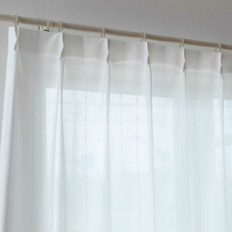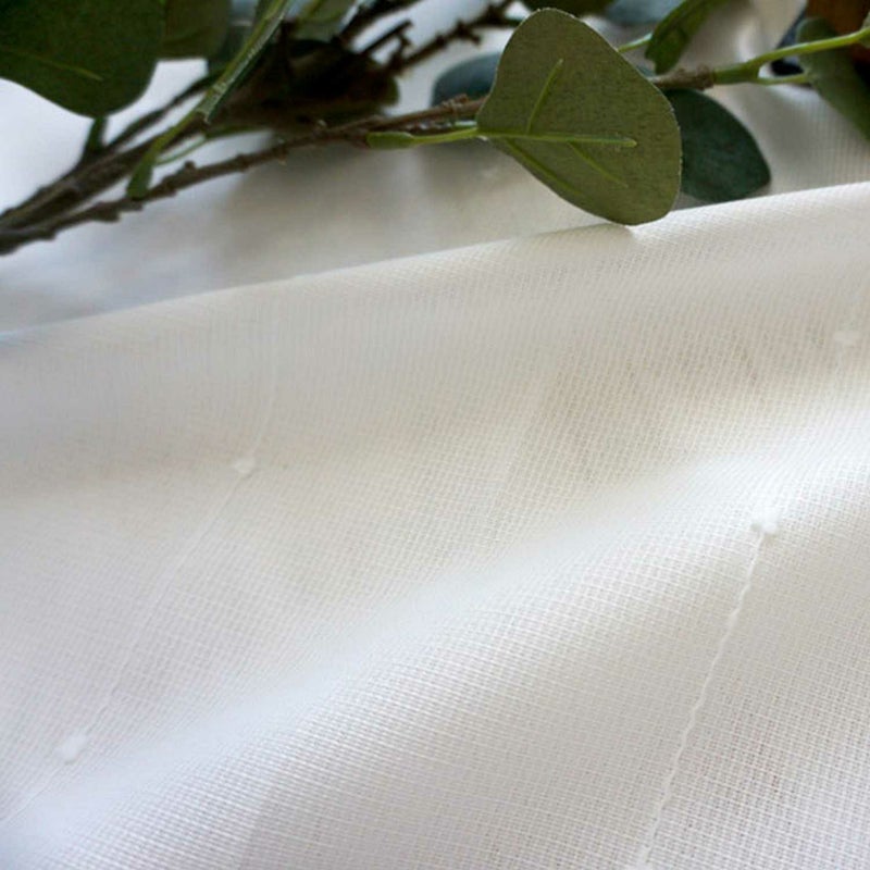 さりげなくストライプとドットの刺繍が入った高機能編みレースカーテンです。