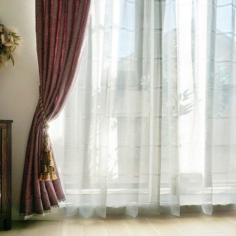 アンティークな雰囲気のワイドチェックデザインが上品なレースカーテン!