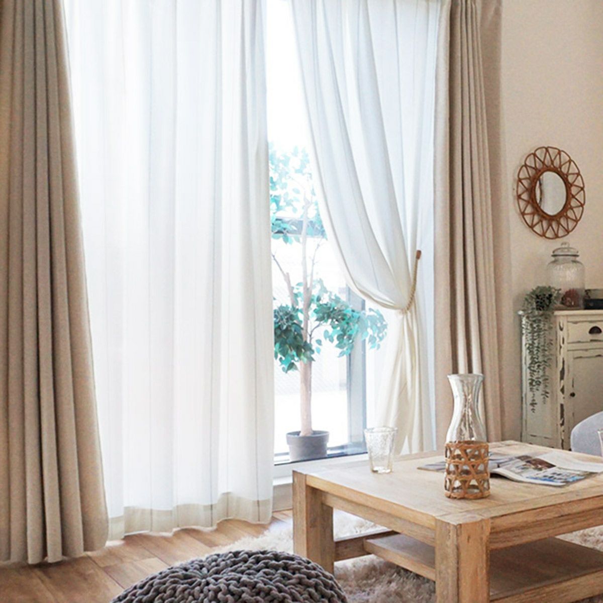 明るいお部屋で、紫外線からしっかり守ってくれる頼もしいカーテンです。