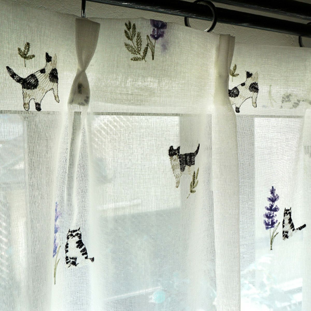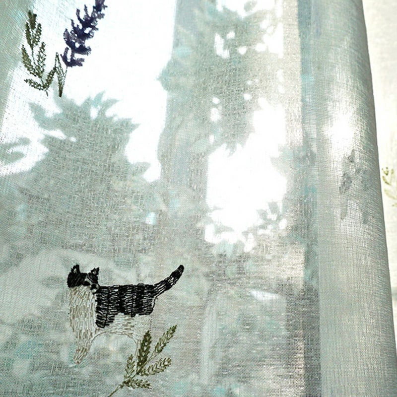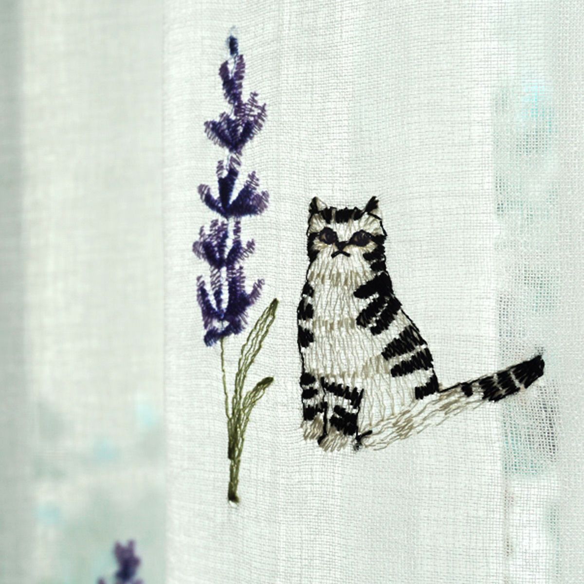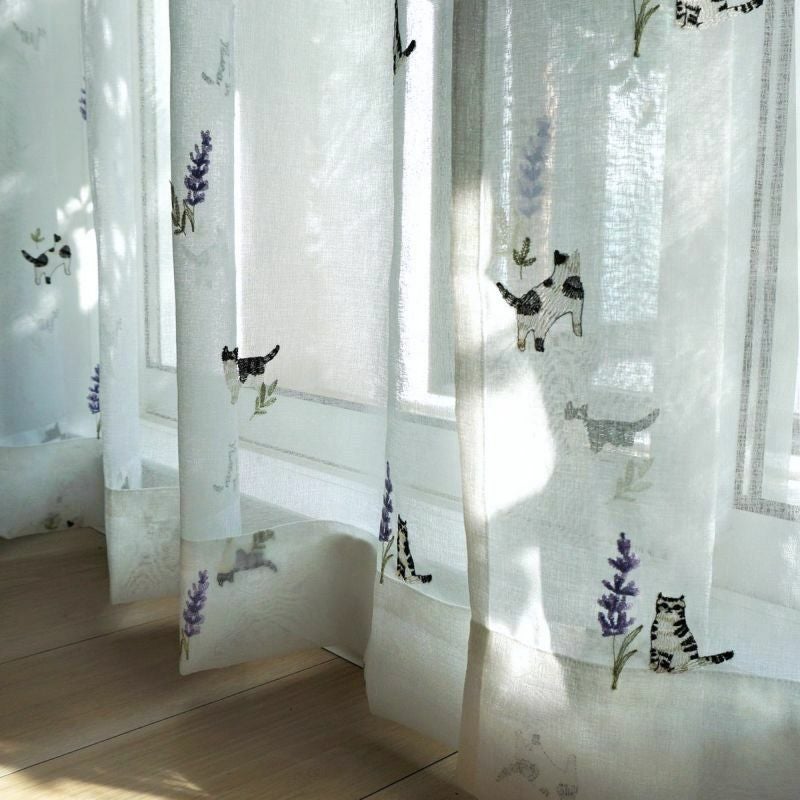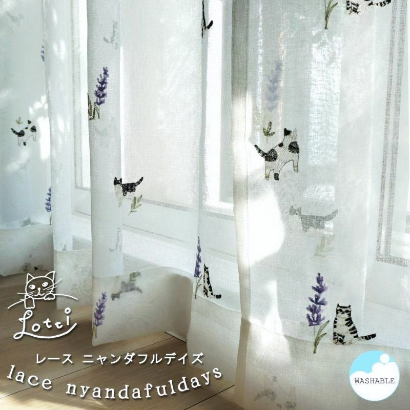【Lotti -ロッティ-】 茶トラの猫ちゃんとミモザの刺しゅうがかわいいレースカーテン <LACE PROMNYADE -レース プロムニャード-> オリジナル 販売価格 ¥ 5,280 税込 お気に入りに登録する