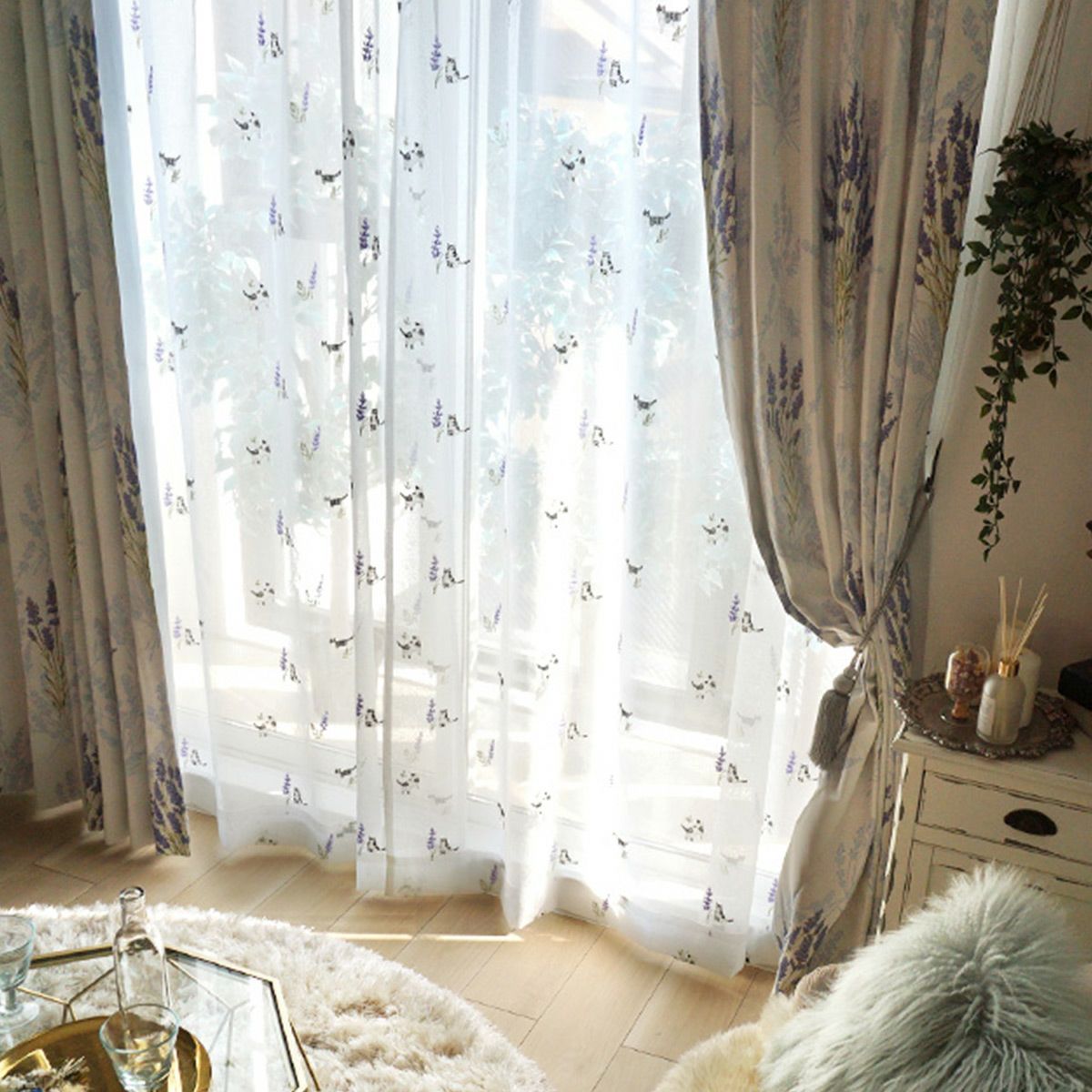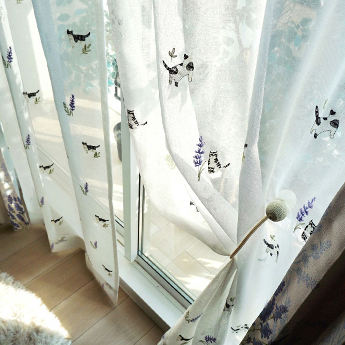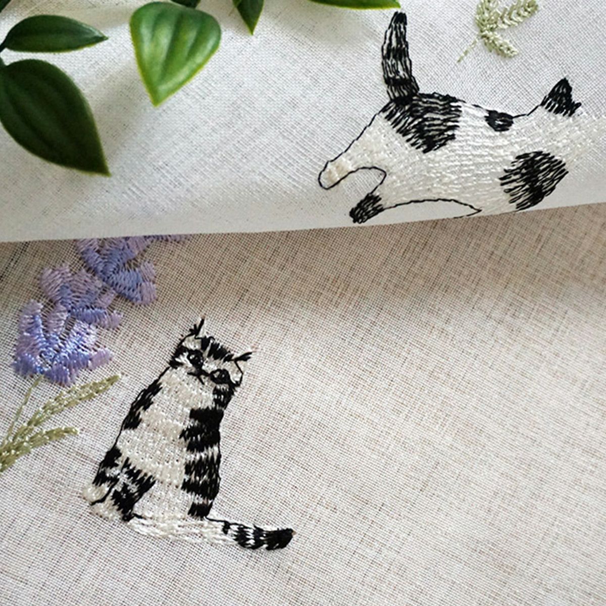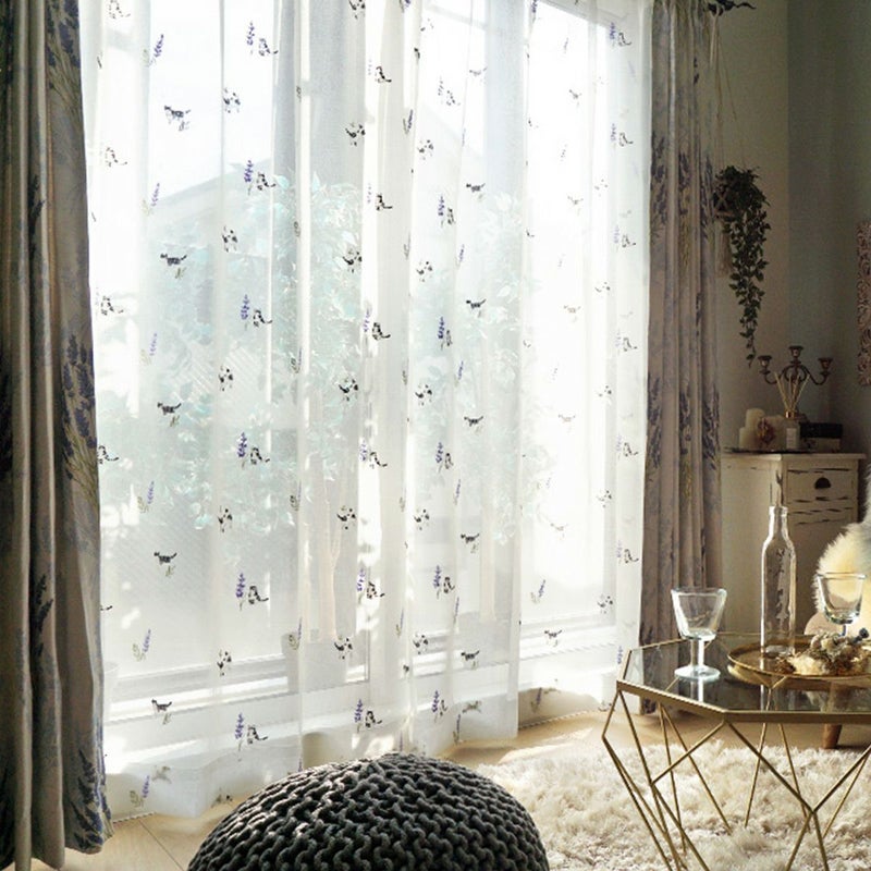 【Lotti -ロッティ-】 茶トラの猫ちゃんとミモザの刺しゅうがかわいいレースカーテン <LACE PROMNYADE -レース プロムニャード-> オリジナル 販売価格 ¥ 5,280 税込 お気に入りに登録する