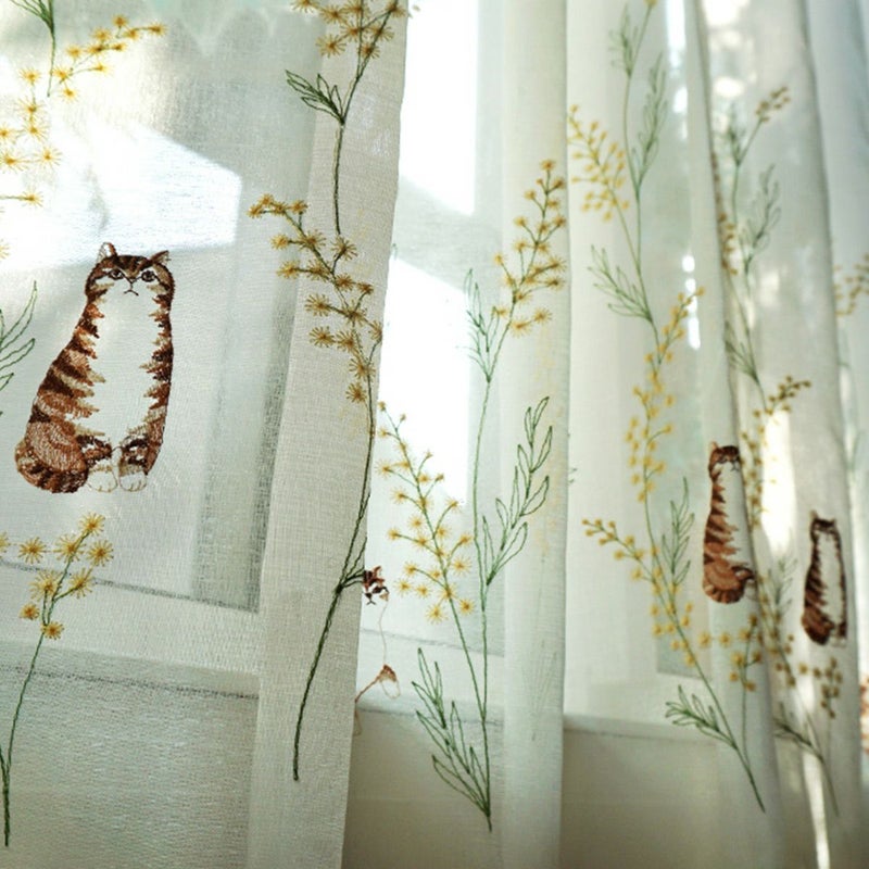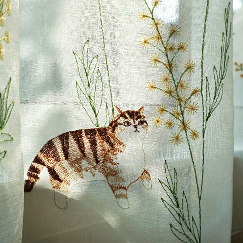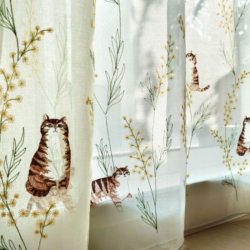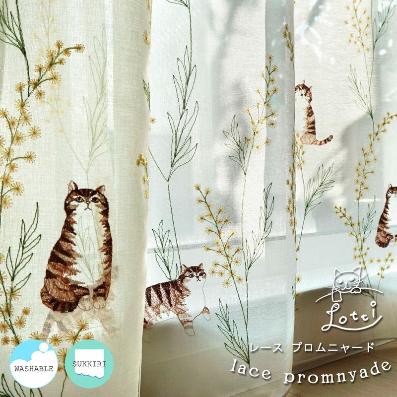 【Lotti -ロッティ-】 白黒の猫ちゃんとラベンダーの刺しゅうがかわいいレースカーテン <LACE NYANDAFULDAYS -レース ニャンダフルデイズ-> オリジナル 販売価格 ¥ 4,400 税込 お気に入りに登録する