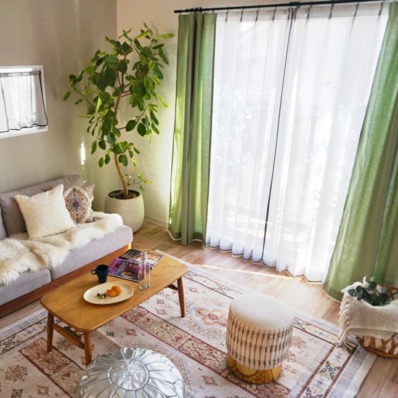 Cotton&Linen 天然素材100%使用のナチュラルカーテン <feel earth フィールアース グリーン>※フラット縫製 天然素材 フラット仕様 非遮光 販売価格 ¥ 4,840 税込 お気に入りに登録する