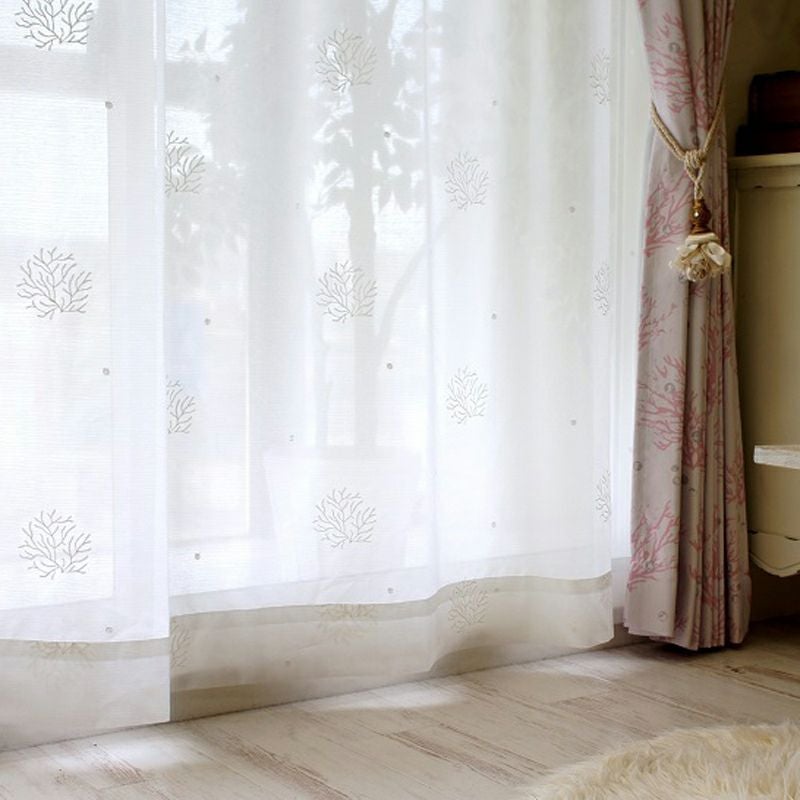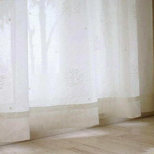 高機能のレースカーテン生地に繊細でしっかりとしたボリューム感のある刺繍で