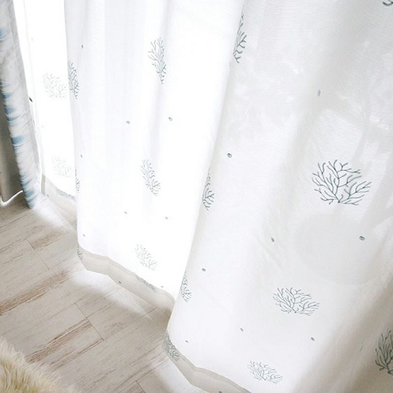 高機能のレースカーテン生地に繊細でしっかりとしたボリューム感のある刺繍で