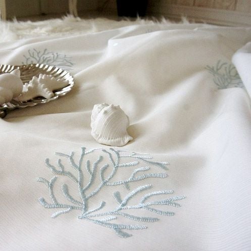 マリンデザインをかたどりました。コーラル(サンゴ)のデザイン部分は、ぷっくりとした刺繍で