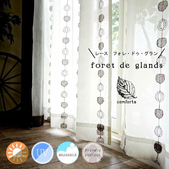 【 NORDAY -ノルデイ- 】木の実柄の刺繍レースカーテン 遮像・遮熱 <レース フォレ・ドゥ・グラン イエロー> オリジナル 遮熱・保温 遮像 UVカット 販売価格 ¥ 3,300 税込 お気に入りに登録する