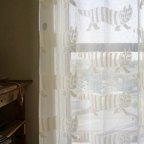 スウェーデンの陶芸家リサ・ラーソンのデザインをカーテンにしました。世界中で人気を得ている動物シリーズ。