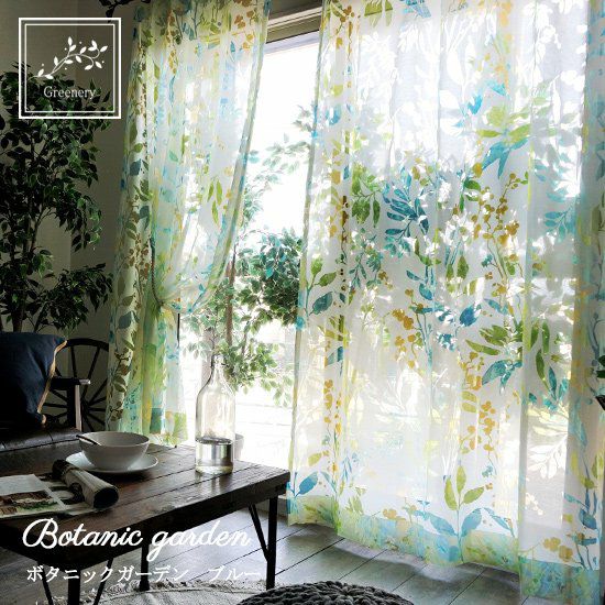 【 greenery -グリーナリー-】オパールプリントで透明感が美しいレースカーテン <NEW ボタニックガーデン グリーン>