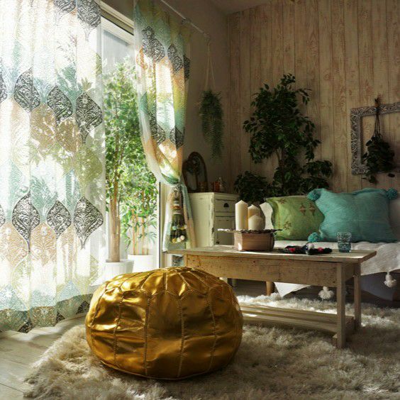 patati patata モロッコから直輸入!山羊革のプフ<プフフ イエローゴールド>