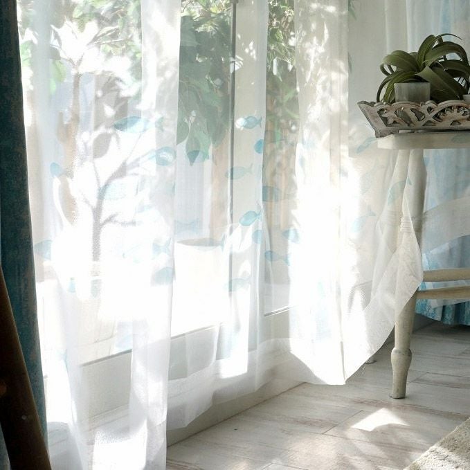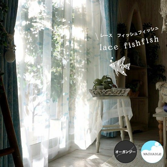 【 MARINE & PIER 】 お魚デザインのオーガンジーとグラデーションレースの2重レースカーテン<レース フィッシュフィッシュ×ヴァーグ スカイブルー> オリジナル 販売価格 ¥ 9,680 税込 お気に入りに登録する
