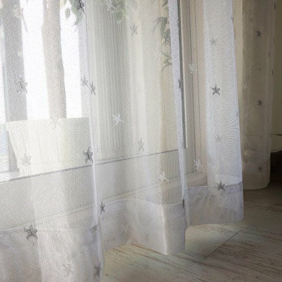 シルバーと白い糸を織り込んでレースカーテンいっぱいにお星さまを散りばめました!