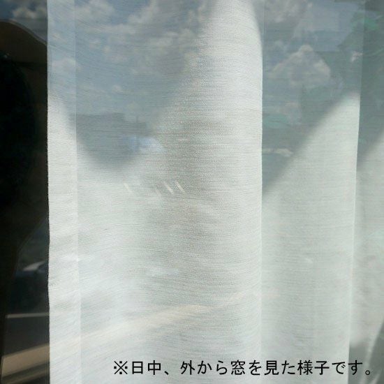 商品ページ上の「外から見た様子」の写真はカーテンをお使いの環境によって見え方が異なります。サンプルをご請求いただきお確かめください。