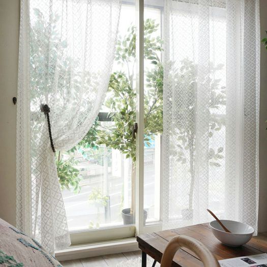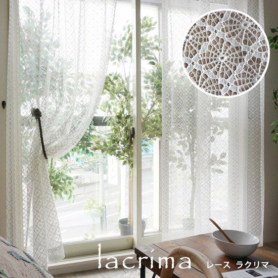 スクエアモチーフのナチュラルな国産編みレースカーテンです。
