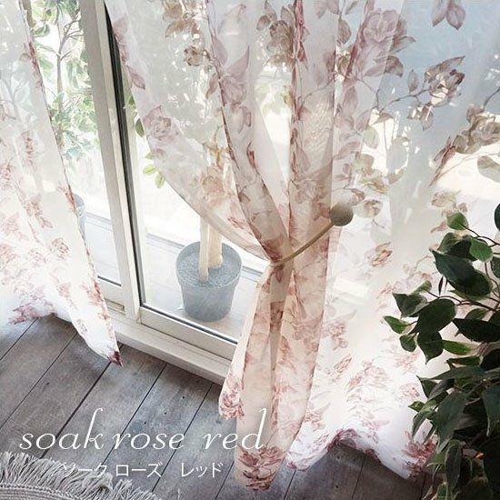透明感のあるレースカーテン <soak rose red - ソーク ローズ レッド>