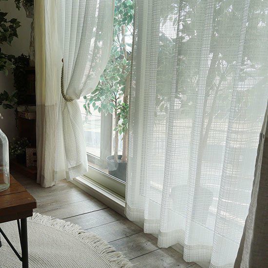 格子状にざっくりと織られた生地感がお部屋をナチュラルな印象にしてくれるミラレースカーテン。