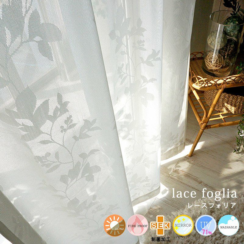 ナチュラルなリーフ模様がどんなお部屋にも馴染みやすい高機能レースです。