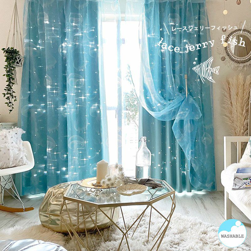 【 MARINE & PIER 】 魚モチーフの超音波カットがキラキラ輝く!厚地カーテン <シャイン インザシー ブルー>※シェード作成不可 オリジナル 販売価格 ¥ 4,840 税込 お気に入りに登録する