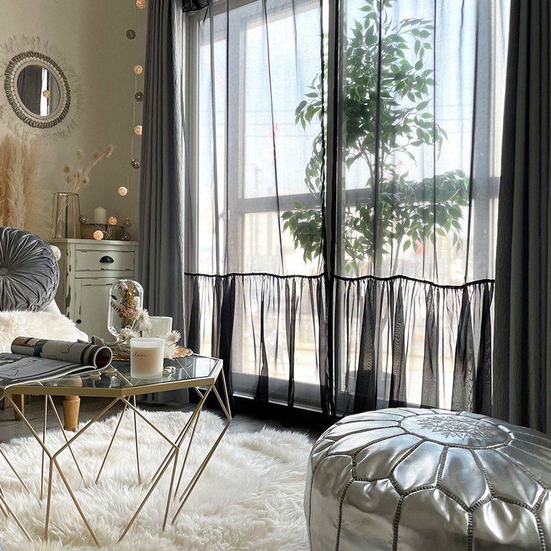 きれいなカラーのボイル生地にギャザーフリルの切り替えしを施したレースカーテンです。