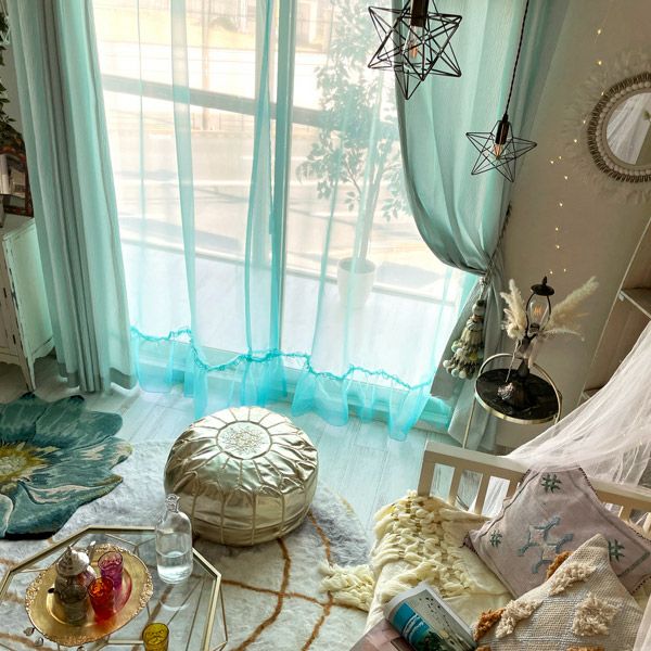 光を受けてキラキラと輝くオーガンジーのフリルが窓周りをより一層華やかに彩り、特別な空間を作り出してくれます。