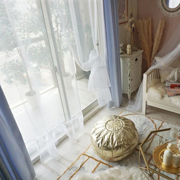 光を受けてキラキラと輝くオーガンジーのフリルが窓周りをより一層華やかに彩り、特別な空間を作り出してくれます。