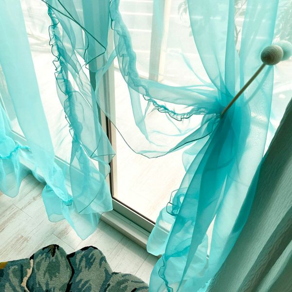 光を受けてキラキラと輝くオーガンジーのフリルが窓周りをより一層華やかに彩り、特別な空間を作り出してくれます。