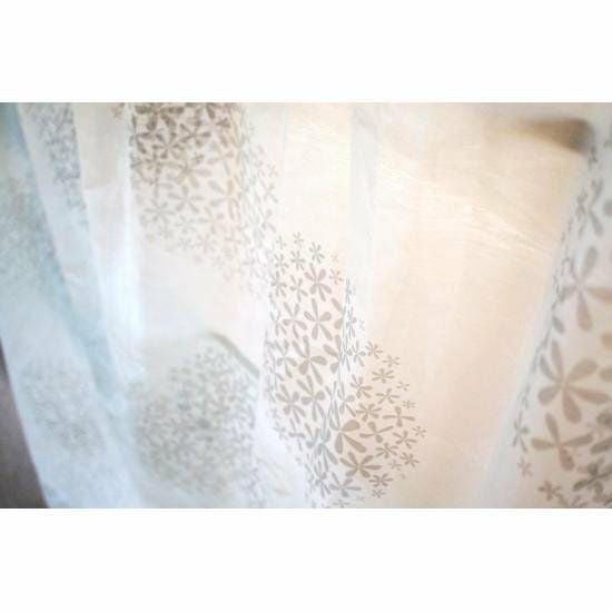 小花が集まってサークルを描く繊細でロマンチックなデザインのレースカーテンです。
