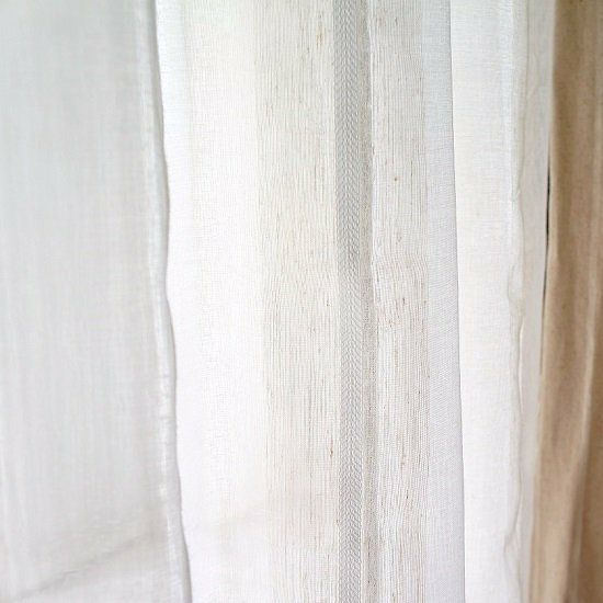 さっくりとした質感の生地にランダムストライプがナチュラルなレースカーテン。
