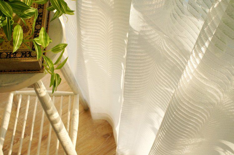 上下へ連なるウェーブ模様が印象的なミラーレースカーテン。シンプルなのでどんな厚地カーテンにも合わせやすいレースカーテンです。